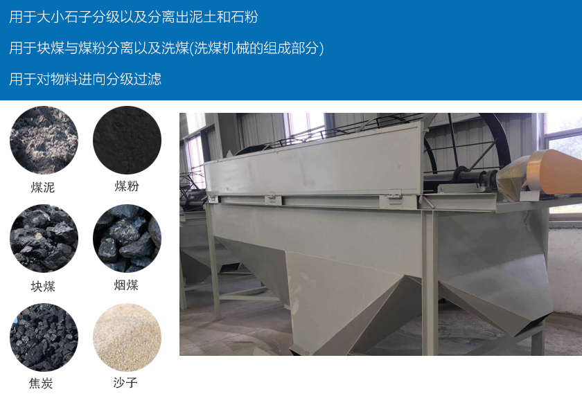 煤炭行業(yè):用于塊煤與煤粉分離以及洗煤(洗煤機械的組成部分)。