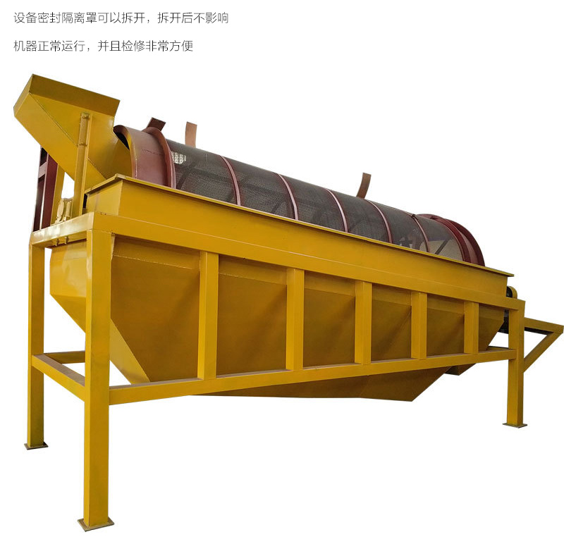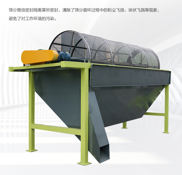 5、滾筒支承采用整體通軸結構,回轉篩速度小,運行平穩(wěn),并且有密封隔離罩與外界隔離,使噪音無法傳遞到外部,降低工作噪音。