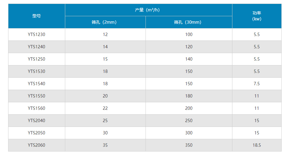 YTS1230小型滾筒篩 篩體規(guī)格φ1*3,篩體傾角5°-7°,筒體轉速22.5轉/分,進料粒度60mm,產(chǎn)量為10-60噸/時。