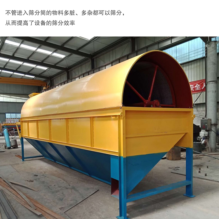 2、滾筒篩可設有梳型清篩機構,在篩分過程中,不管進入篩分筒的物料多臟、多雜都可以篩分,從而提高了設備的篩分效率;
