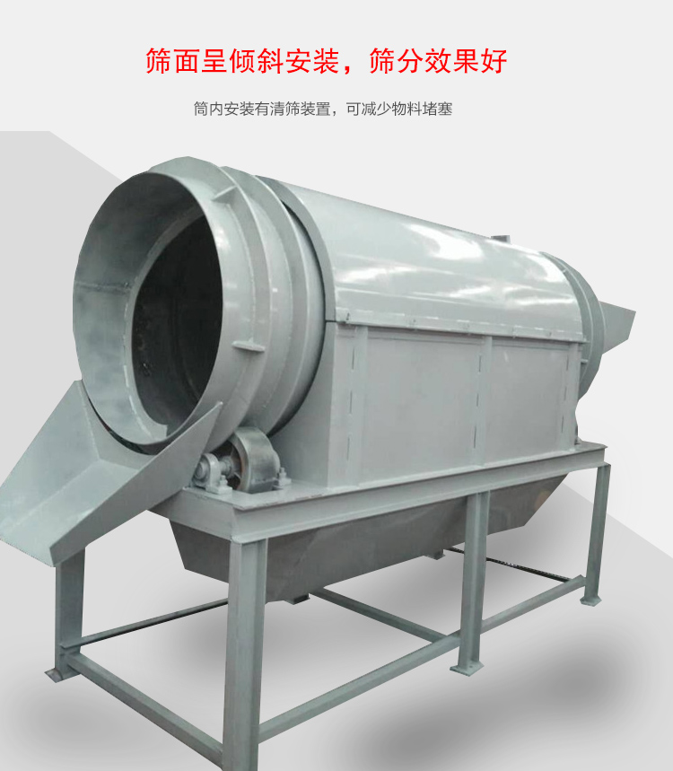 1、采用滾筒篩分原理,物料在篩分過程不停地翻轉(zhuǎn),物料不易堵塞。