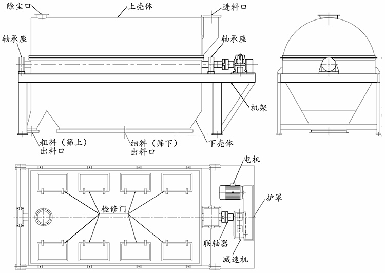 2、筒內(nèi)安裝有清篩裝置,可減少物料堵塞。
