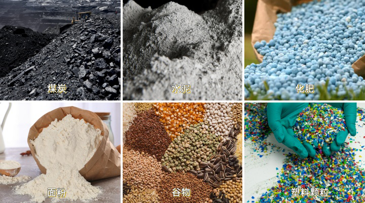 1. 顆粒狀物料:如煤炭、礦石、砂礫、水泥等顆粒物料。